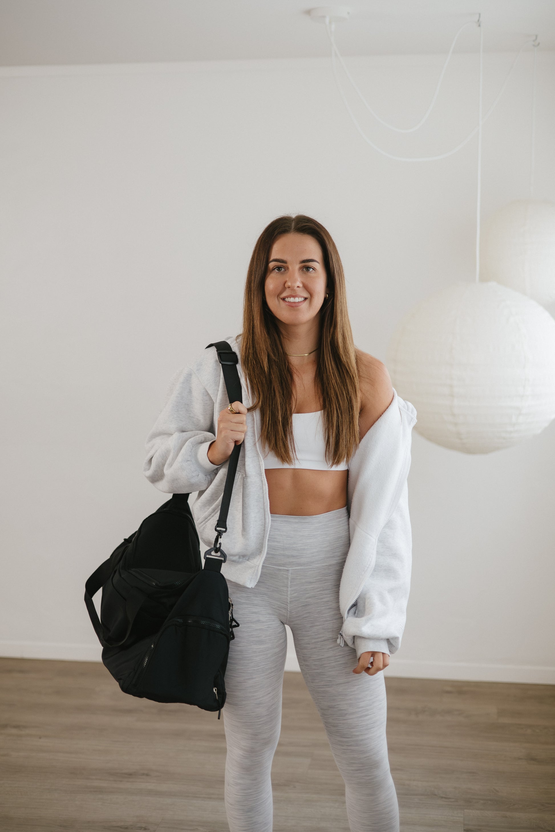 - Lotus Gym Duffel Bag (30L) – A water-resistant, multi-compartment duffel that keeps all your essentials organized. With separate shoe and gear sections, a detachable strap for carrying your mat (or using as a stretch strap), and cushioned handles, it’s built for life in motion.